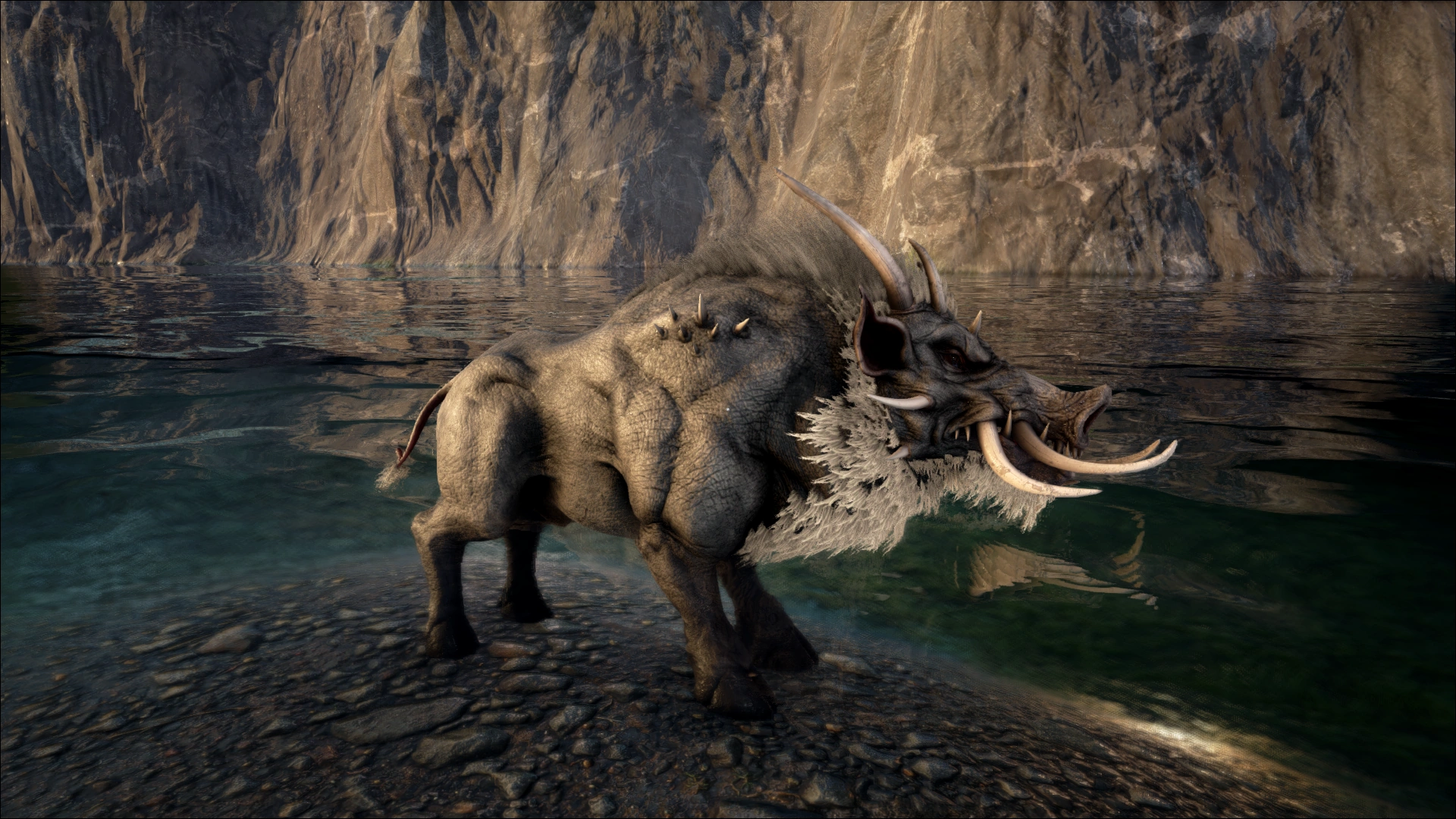 The wild boar is a common sight, you will find it often eating grass or just wandering around either alone or in small groups. The Boar has large tusks which it uses to attack its opponent with if necessary. They are territorial and will attack a player if they wander too close!